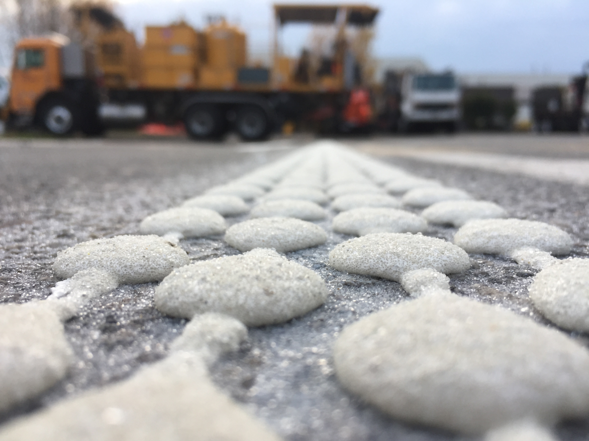 热熔涂料点状划线相较于平线具备更高的逆反射水平。点状可提供更多角度,来接受光线并反射回驾驶员身上。因此,在夜间或微光条件下仍然具有可视性。