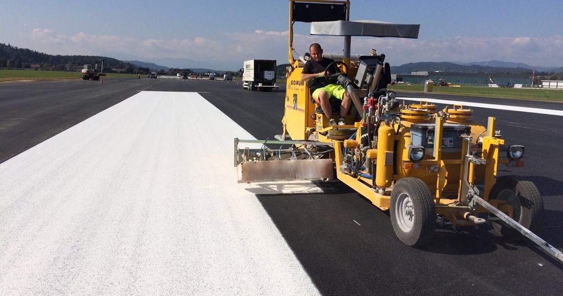 Eines der größten Projekte für Flughafenmarkierungen, bei denen Röhsler die Maschinen von Borum einsetzte, fand am Flughafen Klagenfurt in Österreich statt. Nachdem die gesamte Landebahn erneuert wurde, blieb dem Team von Röhsler ein Zeitfenster von nur 48 Stunden, um die Bodenmarkierungen zu erneuern. Ein Team aus 16 Angestellten und solide Ausrüstung waren erforderlich, um die Aufgabe innerhalb einer so kurzen Frist erfolgreich abschließen zu können. Die hervorragende Arbeit machte diesen Auftrag zu einer bleibenden Erinnerung für das Team von Röhsler.