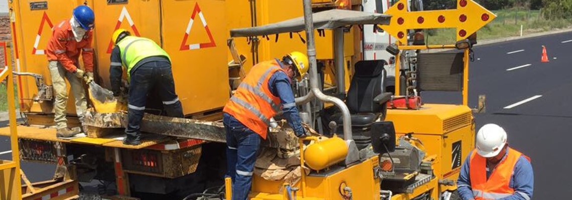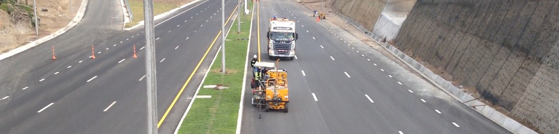 Eines der Projekte umfasste Markierungsarbeiten auf der verkehrsreichsten Straße von Quito, der Avenida Simón Bolívar. Mehr als 60.000 Fahrzeuge rollen pro Tag über diese Straße, die sich auf 2.850 Metern über dem Meeresspiegel befindet und mit vielen langen und steilen Abhängen gespickt ist. Vor sieben Jahren brachte ST Thermoplastikmarkierungen auf der Straße auf. Noch heute erfüllen die meisten dieser Markierungen den geforderten Standards. Gegenwärtig wird die Straße jedoch saniert, weshalb auch die Straßenmarkierungen erneuert werden. Hier kommt die BM 250 von Borum zum Einsatz, mit der nun frische Thermoplastikmarkierungen aufgetragen werden.
