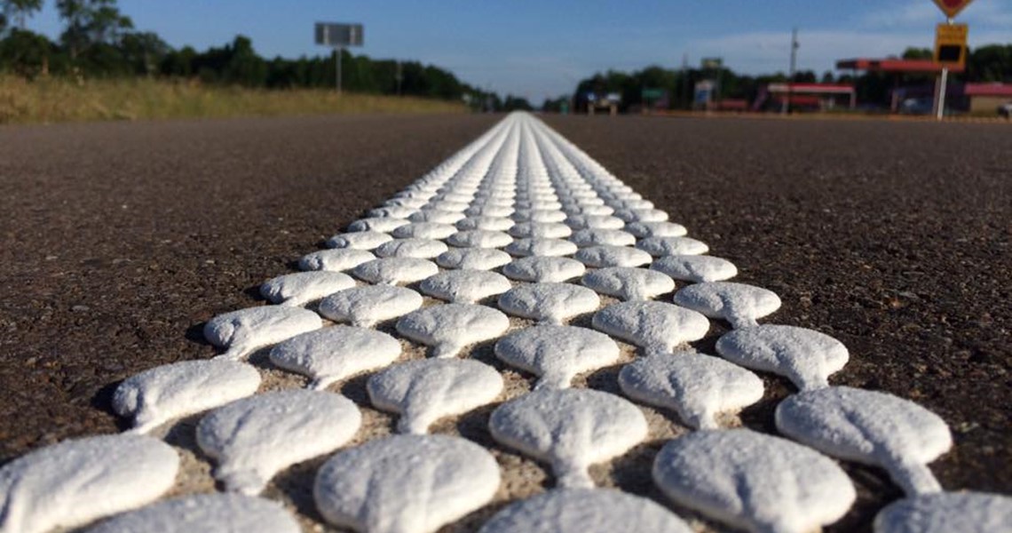 Type 2, which is the newest road marking technology where parts of the road marking topology is raised over the road surface. This has the important advantage to ensure a perfect retro-reflection especially during night. Furthermore, Type 2 road marking systems can be scattered with glass beads to improve the retro-reflection.