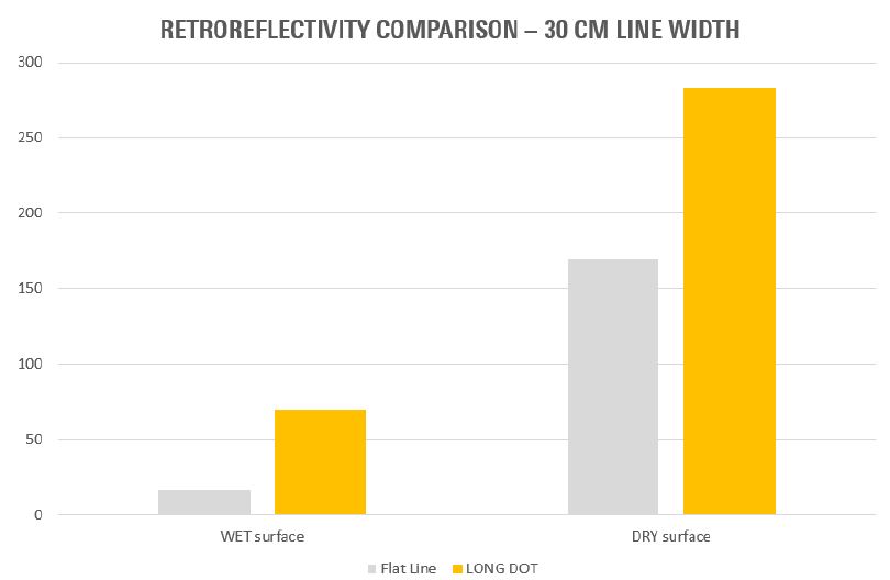 The solution is the new thermoplastic profiled long dot marking or ViaTherm LongDot as named by Geveko Markings.
