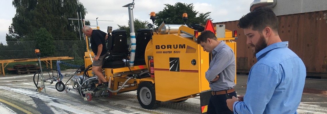 Borum is an experienced global supplier of professional machinery for line marking. Our product range comprises compact self-propelled line marking machines, line marking trucks, as well as related equipment such as preheaters for thermoplastic, trailers for transportation of machines, trailers for carrying out manual marking as well as road dryers and Erasers for removing lines.