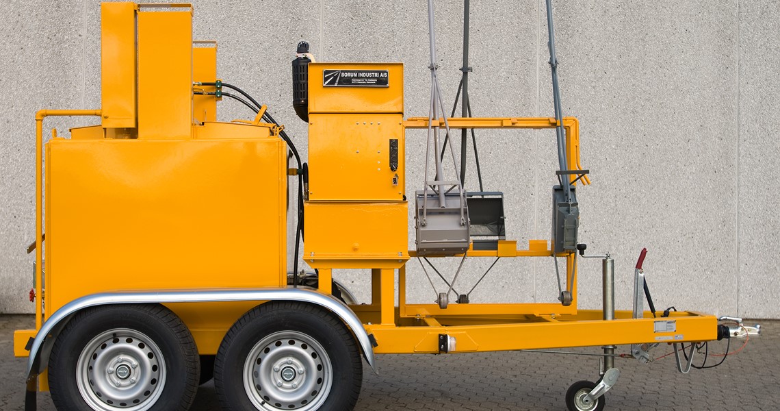 The trailer with thermoplastic preheater prepares and fills the hot thermoplastic directly into a manual screed box. Alternatively, you can use it for feeding a self-propelled machine by means of a filing system.