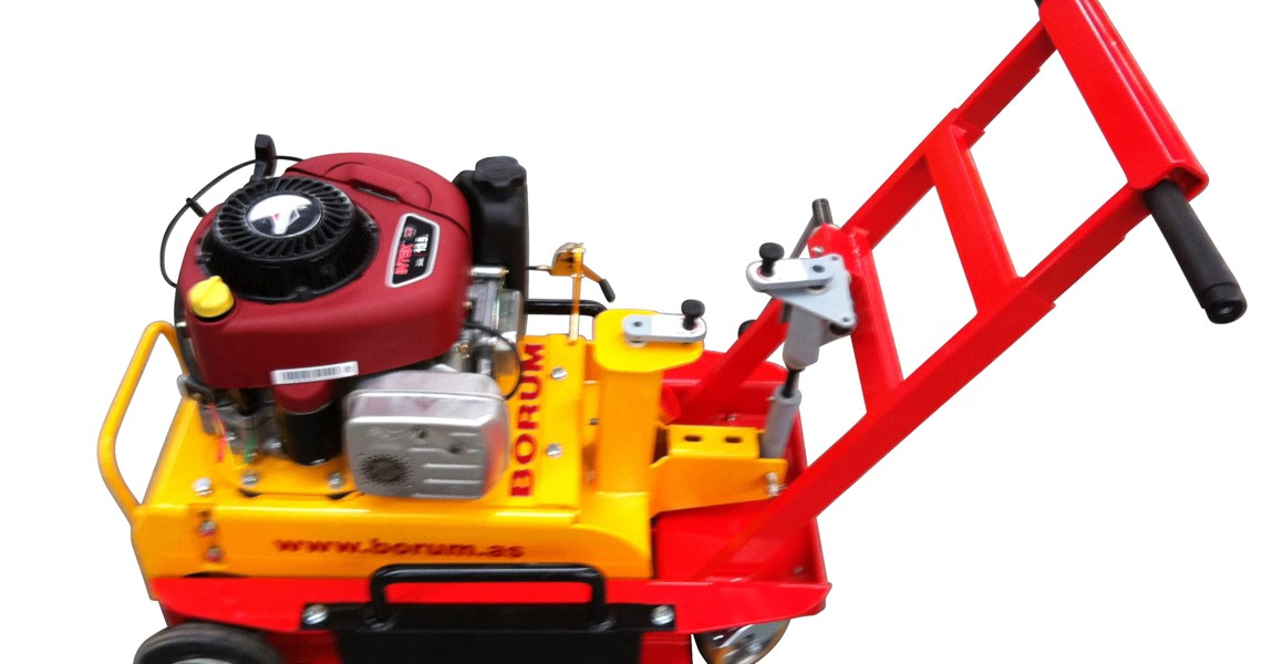 The Borum hand screed boxes can be used for manual extrusion jobs with thermoplastic material as for e.g. parking lots, pedestrian crossings, and STOP signs.