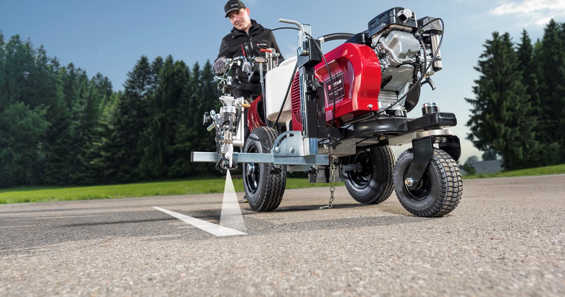 In addition, we will also showcase a small hand-guided marking machine for airless cold paint application in collaboration with Titan. The Line Striper VIII has a material capacity of 45 L and depending on the equipment set-up, it can apply 1 or 2 lines in the same color.