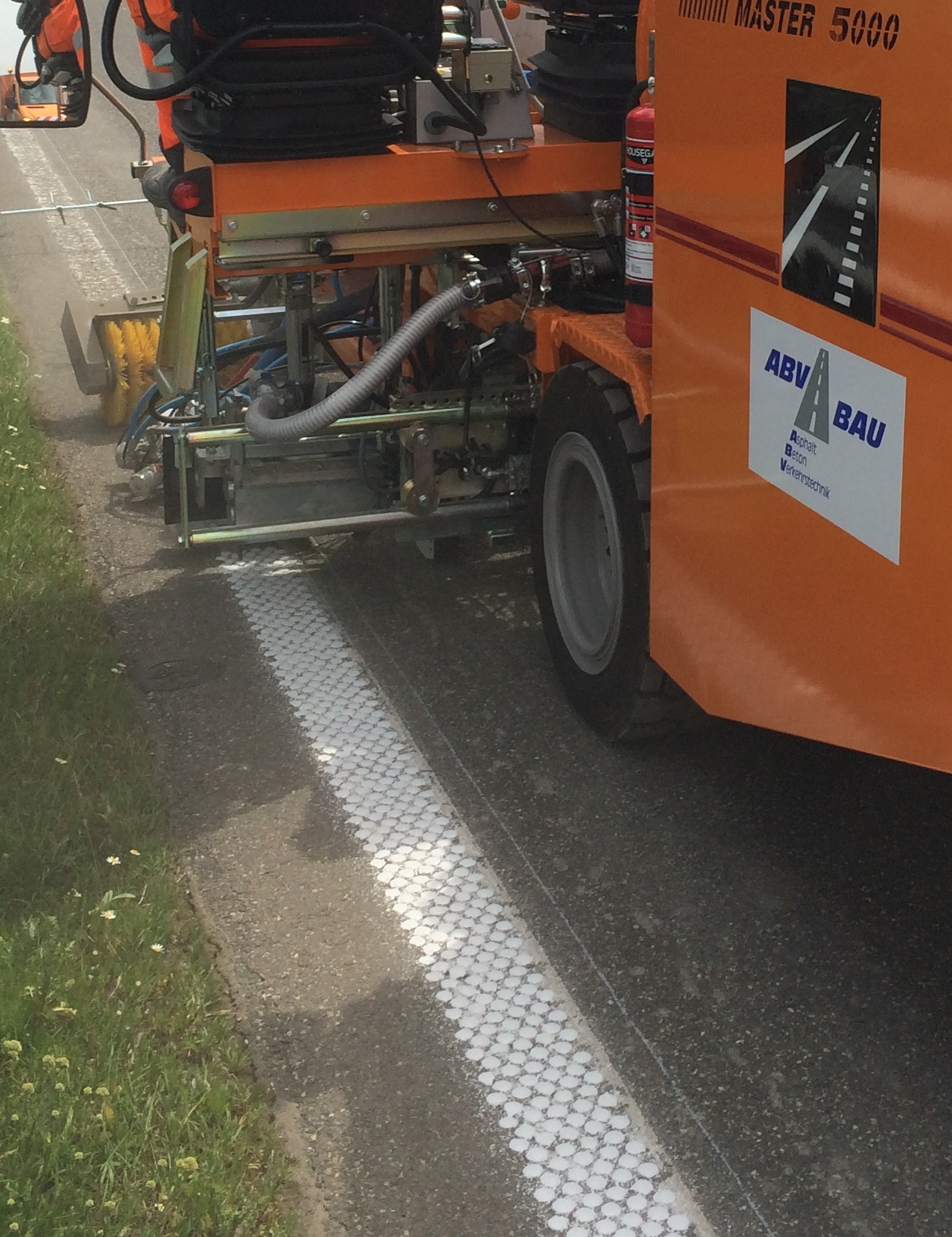 Dot application methods are used for applying profiled markings in the shape of dots (also known as structures or type 2 markings). The dot applications can be applied with either thermoplastic or 2 component cold plastic material.