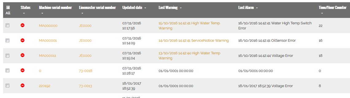 To enter a Machine diagnostic data you must click on the serial number of the Machine.
