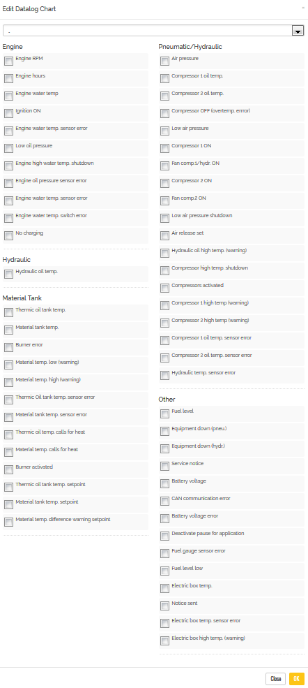 Please notice: The data you can select, depends on the configuration of your machine. Therefore, some options might not be available to select.