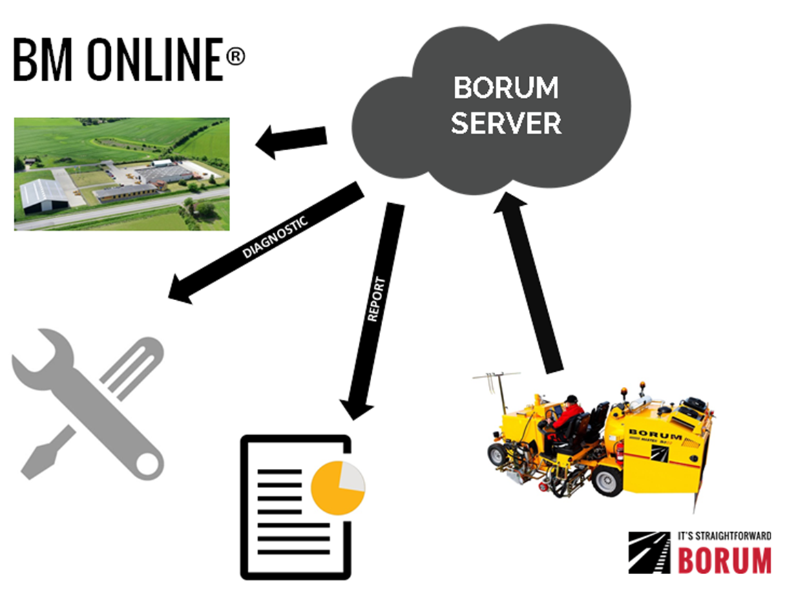 With BM Online you will be able to see online data collected from the BM LineMasters and Master Control found on your Borum machines. This will make it easy to keep track of the machine’s activity, be notified if any parts of the machines are overheating and even set service notifications from your desk or on the go. Furthermore, reporting will be much easier to handle as you can export all this data with the push of the button from the BM Online web portal.