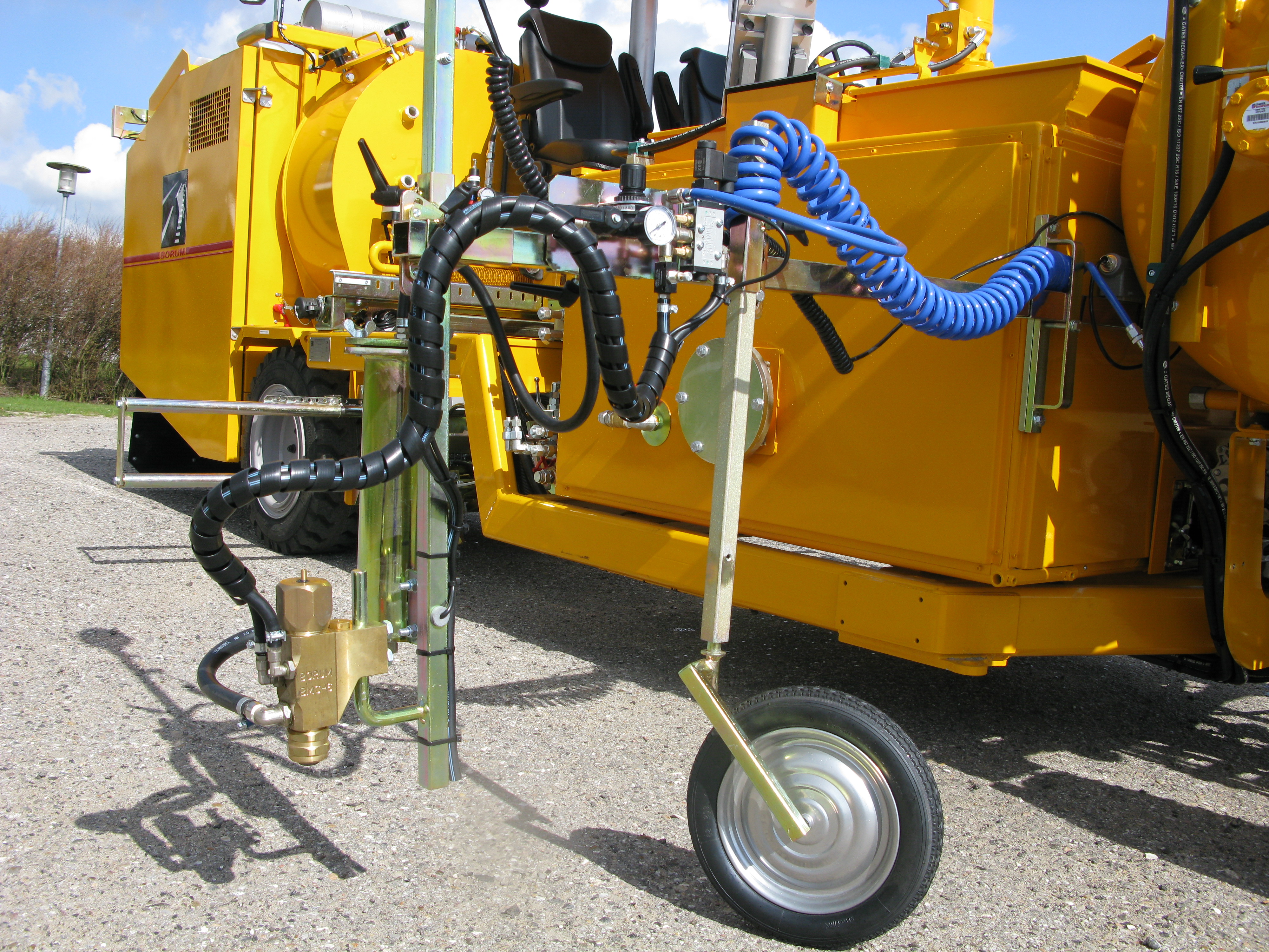 A can of aerosol reaches approx. 1000-1200 m. Pre-marking with a gun is more cost-efficient to use and has a reach of approx. 2000 m per refill. Learn more here