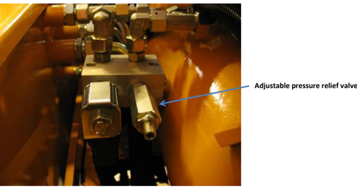 If the Adjustable pressure relief valve is turned counterclockwise, the pressure in the steering will be lower and the steering will be harder.