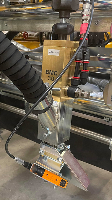The bead alarm consists of a sensor mounted on the bead gun, detecting stop of bead flow and giving alarm. The Bead alarm can be connected to the BM LineMaster computer. When retro-fitting you must expect to update the software.