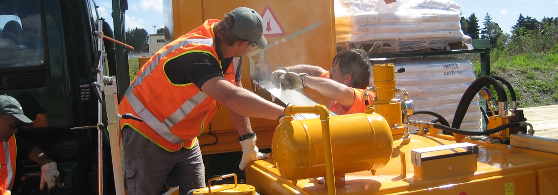 At longer breaks in the application work, it is recommended to decrease the temperature at all thermoplastic thermostats, or you can completely turn off the oil burner and keep an eye on the temperature.