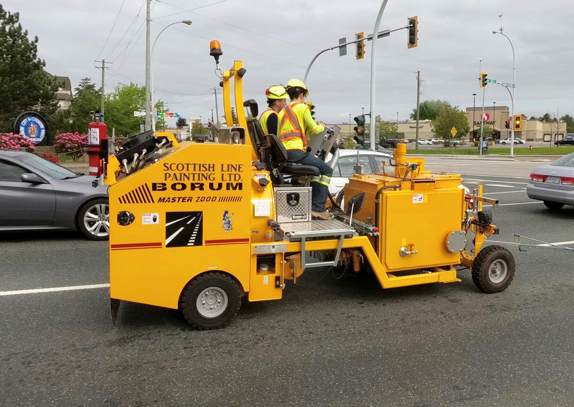 Scottish Line Painting is based in Vancouver, Canada, where the weather and road conditions can be challenging for drivers. Vancouver typically receives 161 days of precipitation each year. This drove Scottish Line Painting to look for a marking solution that would provide better visibility in the rain and at night. Their solution is to apply thermoplastic dot markings using Borum technology.