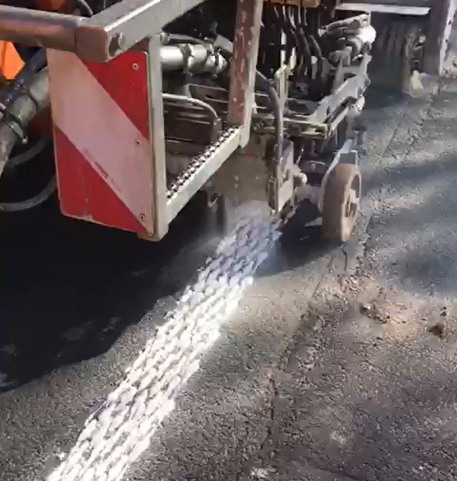 La cantidad de producto que se echa a la carretera está regulada por la presión de la bomba y la presión del aire pulverizado. Después de iniciar la aplicación, es posible configurar la cantidad de material en relación con la velocidad de la máquina.