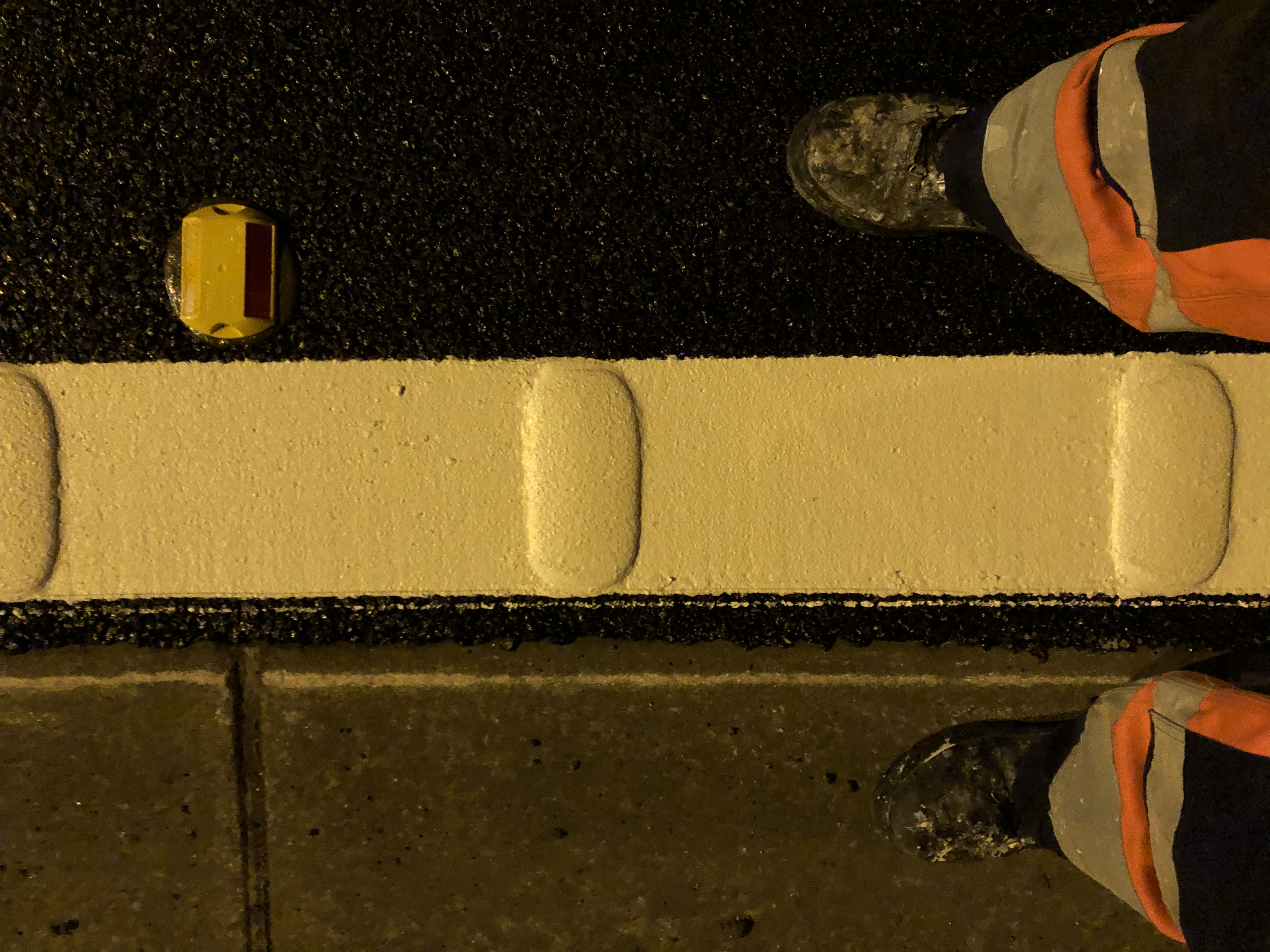 Durante la noche, el equipo cierra las carreteras para aplicar las líneas, lo que garantiza la seguridad de los trabajadores. Según nos cuenta John, probablemente el 90 % del trabajo tiene lugar en turnos de noche.