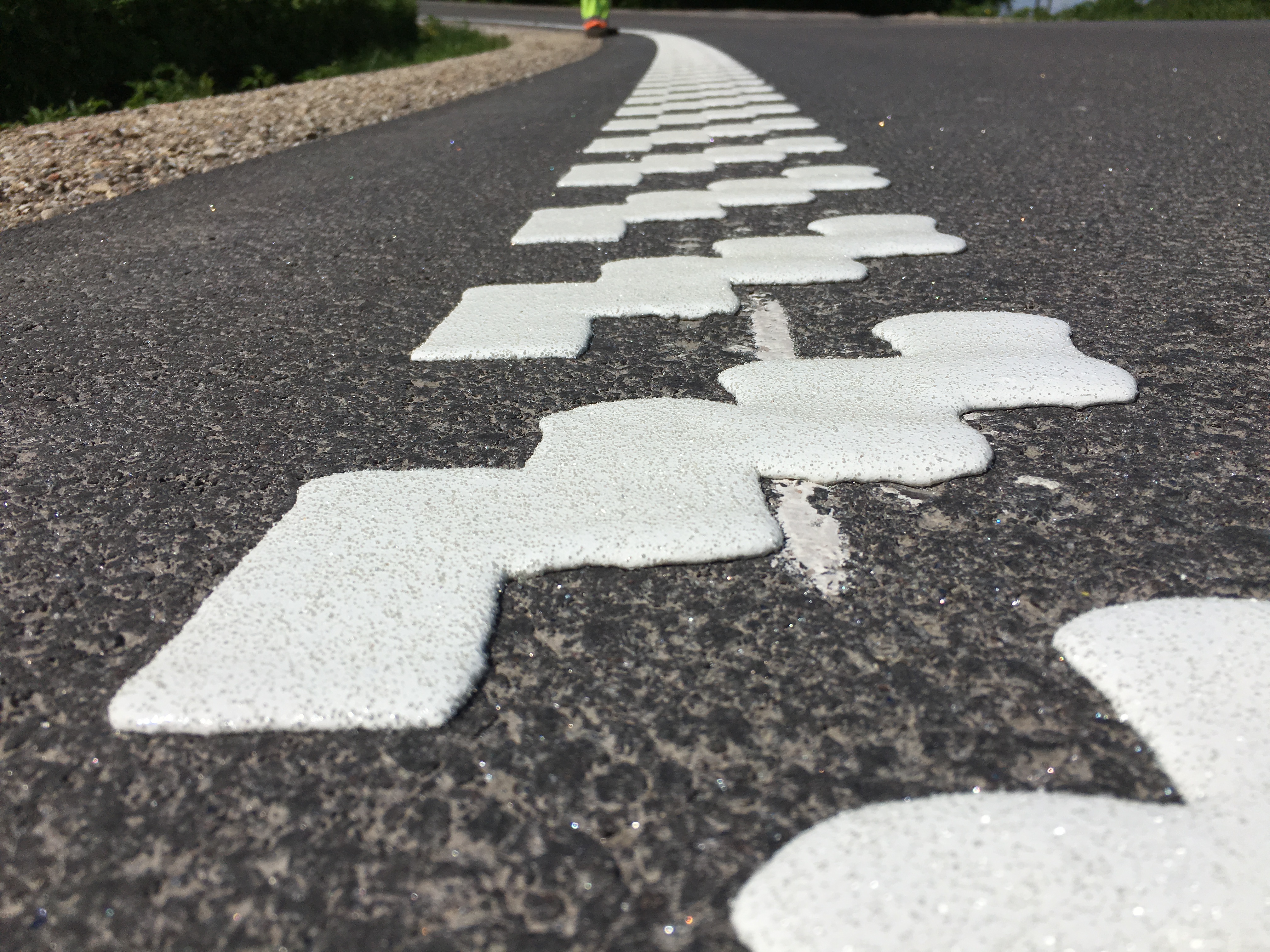 Les régions froides sont confrontées à des défis en matière de marquage routier. Pour les relever, il faut tenir compte d’un facteur majeur : le choix du bon matériau de marquage ! Il est crucial d’utiliser des matériaux dotés d’une certaine flexibilité face au froid pour les marquages routiers. Le matériau doit être flexible en cas de températures basses afin qu’il ne soit pas abîmé de manière excessive par le passage des pneus cloutés et des chasse-neige. Cependant, il doit aussi présenter une dureté suffisante durant la saison estivale chaude pour éviter les déformations et l’empreinte des pneus.